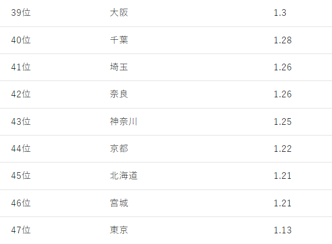 中でも東京の出生率の低さは群を抜いている。